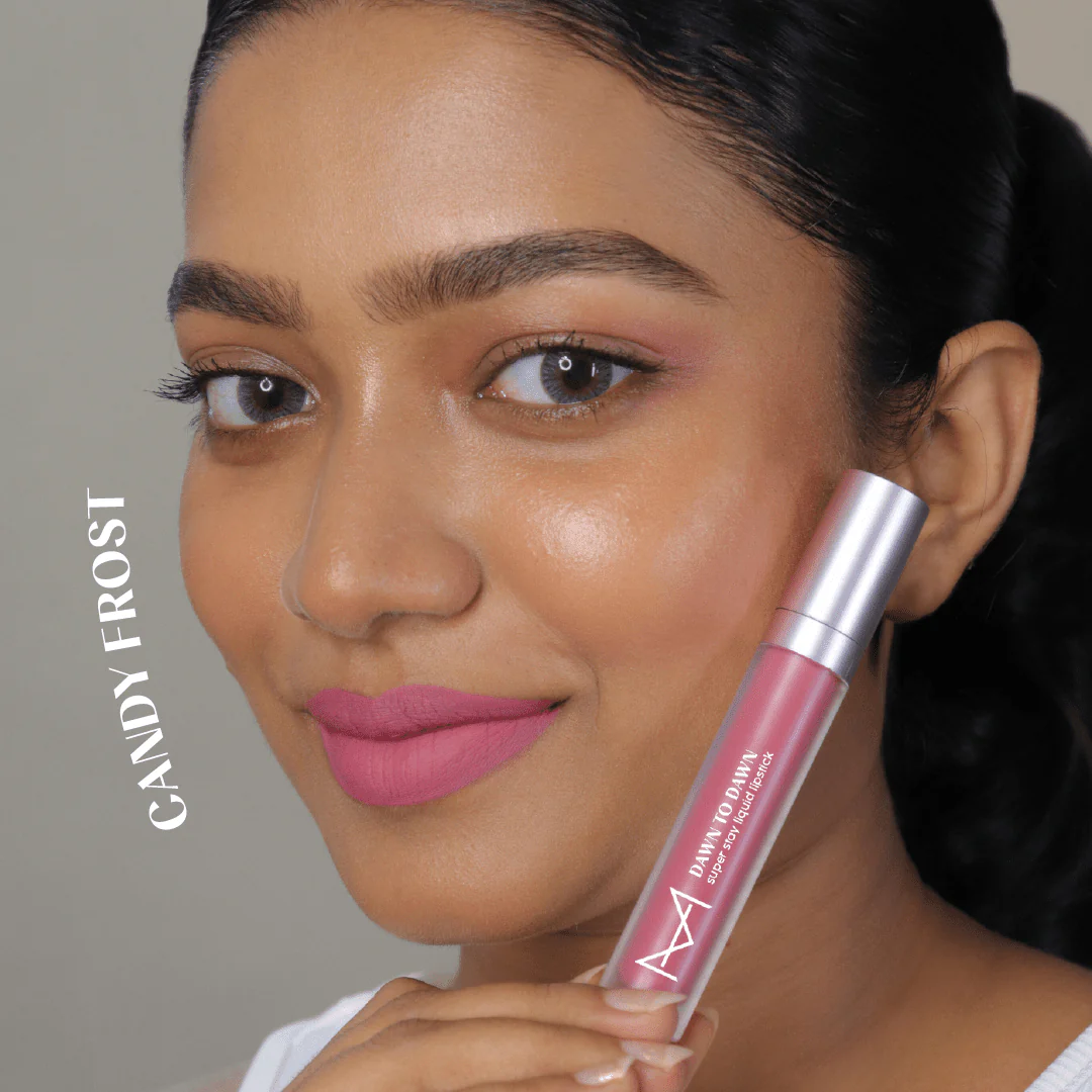 Experience liquid lipstick in its best possible form: if velvet was a liquid, this is how it would feel. Finally, here’s a matte-finish liquid lipstick that stays on for 12+ hours without cracking, crumbling, peeling, or drying your lips. Its unique formulation sits gently on the lips without tugging or pulling—just apply it and forget it! Dawn To Dawn packs in a powerful combination of rich pigments and skin-loving ingredients like hyaluronic acid, vitamin E, and a blend of potent oils to moisturize your lips. With 10 gorgeous shades to choose from, including daily-wear nudes and browns, lush pink hues, and bold red shades, we have a color for every mood. Get ready for one-swipe pigmentation that stays with you from dawn to dawn.
